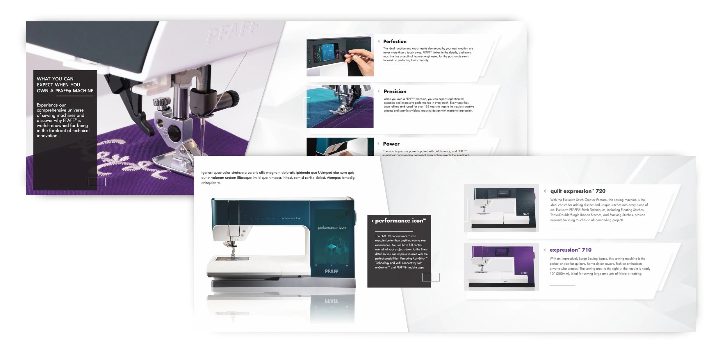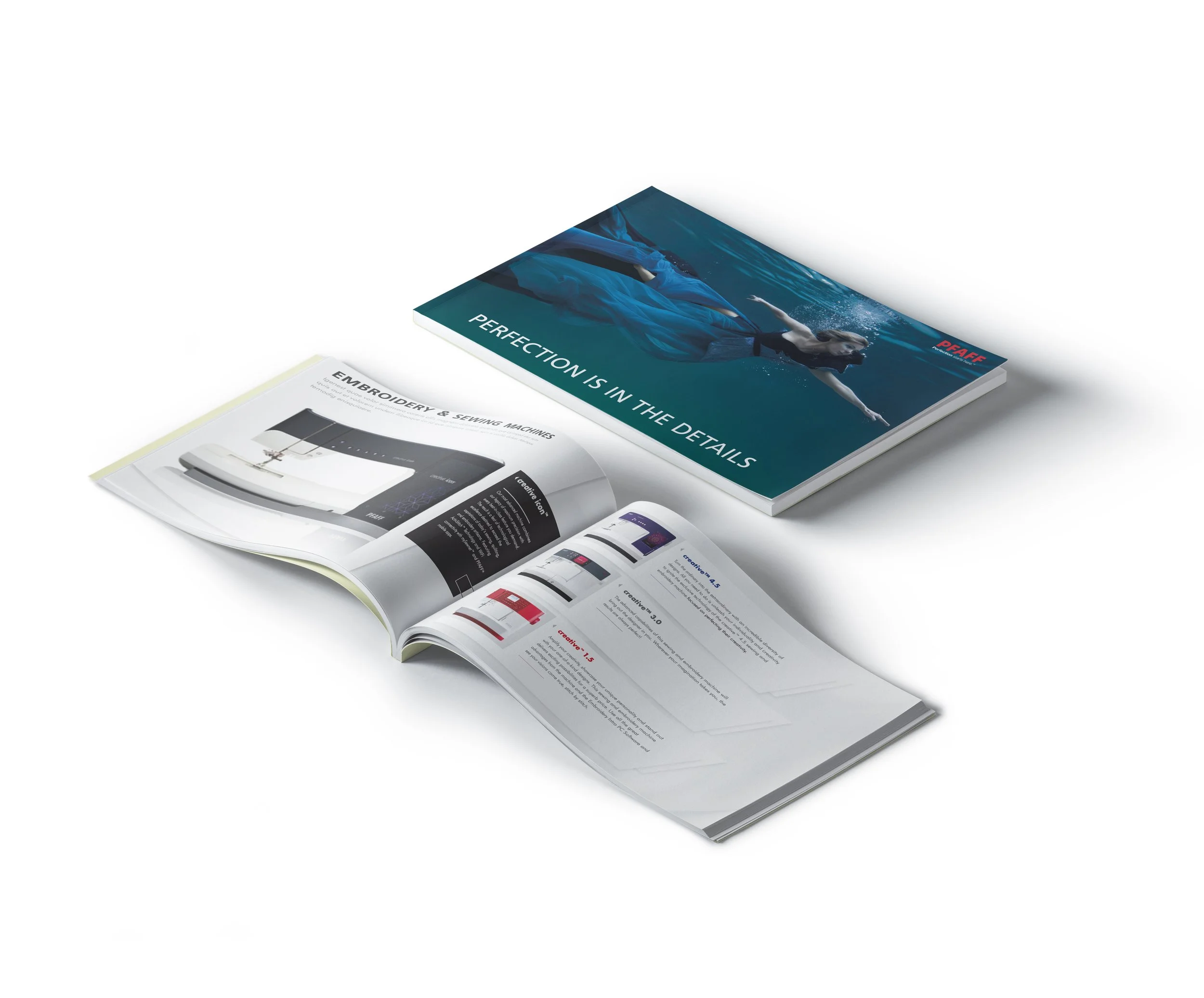 One task involved designing an exciting catalog that reflected Pfaff's cutting-edge technology, craft and high-fashion reputation, while another focused on revitalizing the packaging for Singer products.